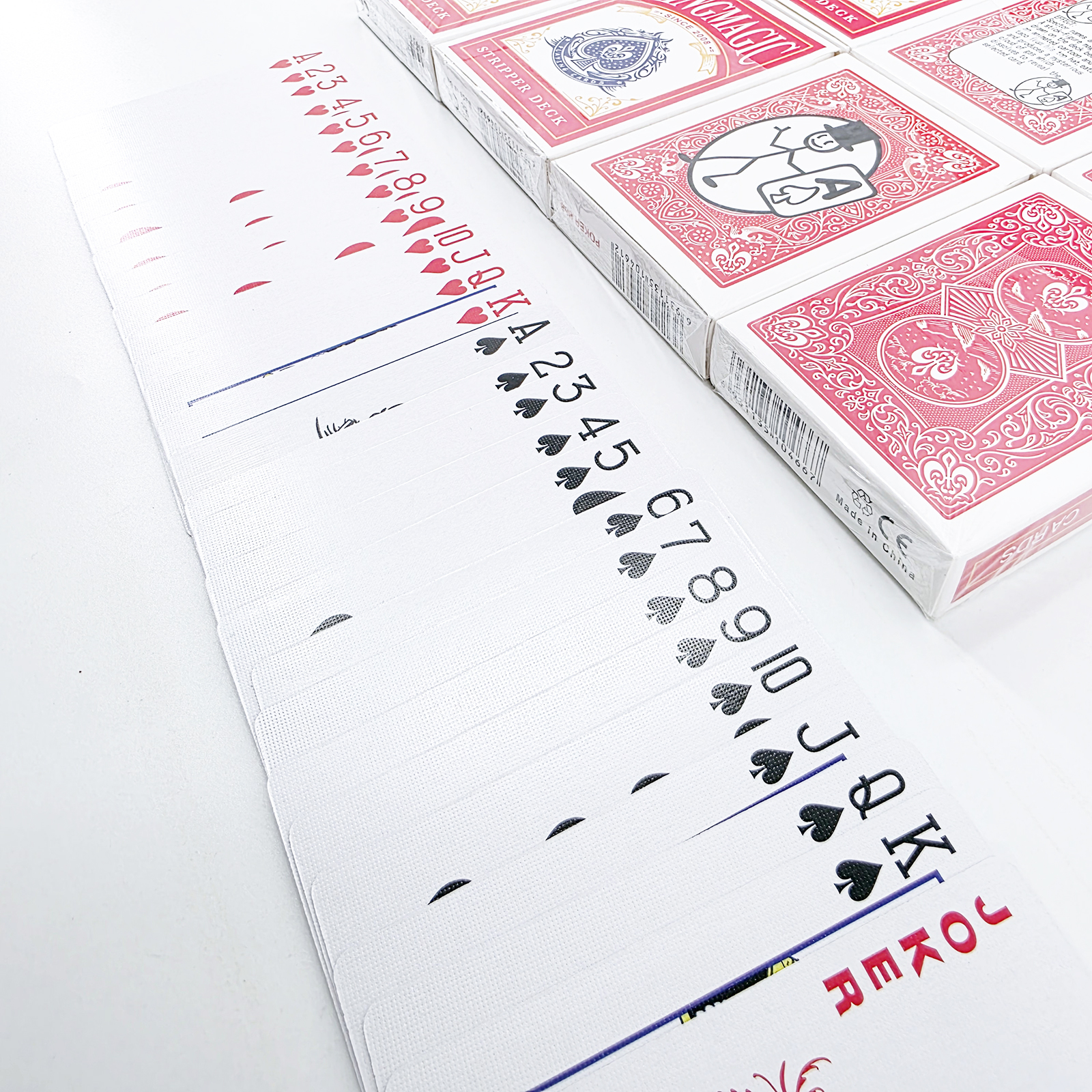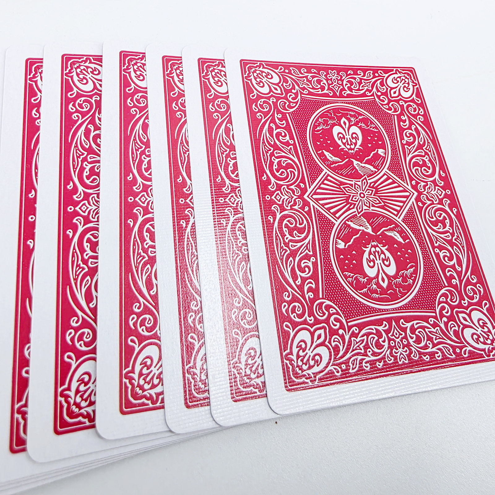 一副看似普通的扑克牌,魔术师从容展示正反两面,邀请观众随意抽取一张。牌面朝下置于掌中,魔术师仅凝视牌背,便瞬间脱口而出:"红心A!"——精准无误的读心术引爆全场惊呼!秘密在于每张牌的背面暗藏精密标记,肉眼难辨的差异构成独特"身份指纹",魔术师仅需0.5秒即可破译牌面信息,却将"未卜先知"的神奇体验留给观众。
